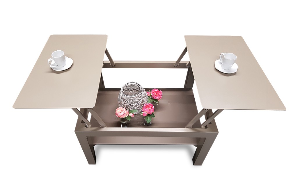 | Masse und Stückzahl | 1 x verstellbarer Tisch in sandbraun L 73.5 x B 59 x H 40 cm aufgeklappt: L 121.5 x B 59 H 58 cm inklusive Glasplatte |
