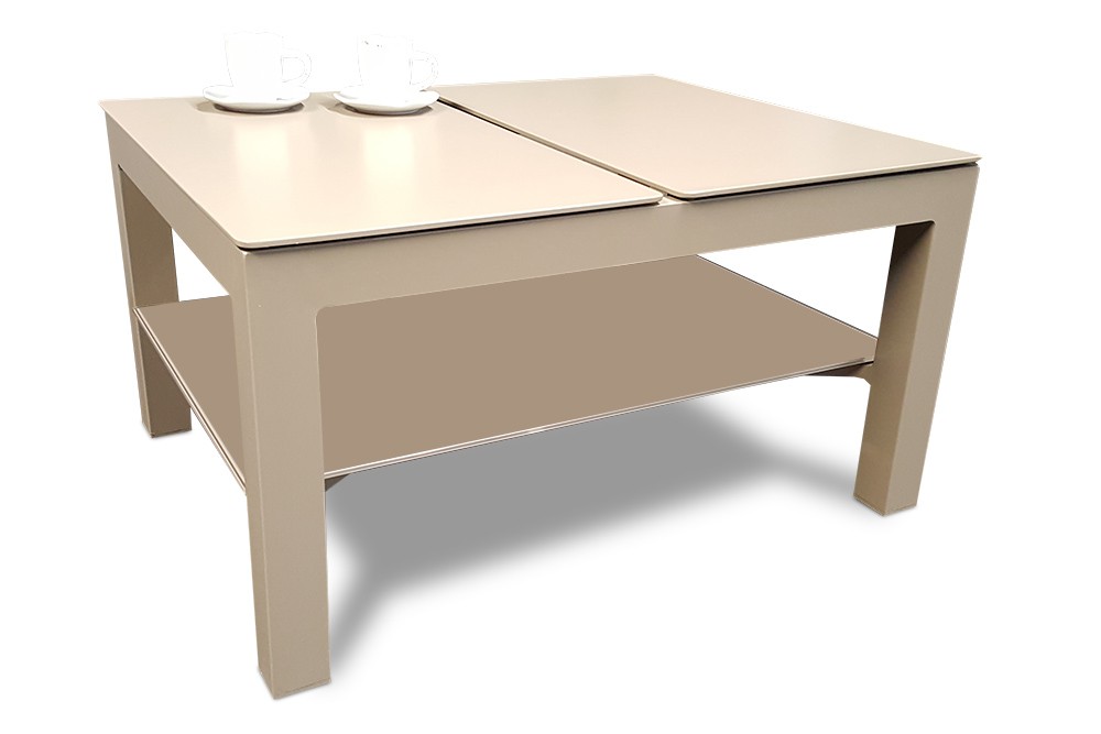 Dieser praktische Loungetisch erweitert Ihre Loungegruppe. Er lässt sich beidseitig hochklappen,