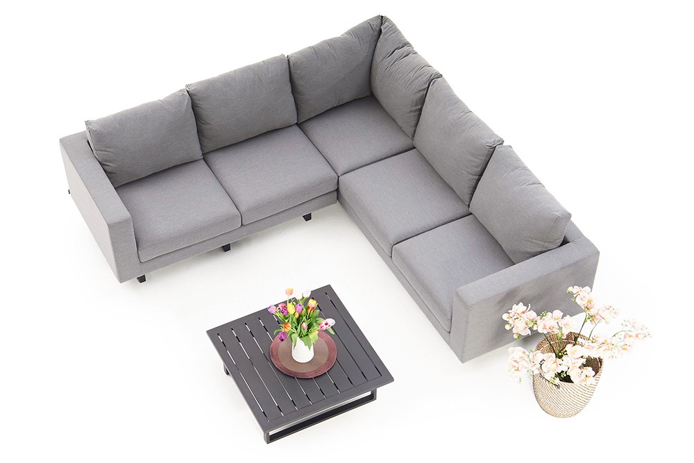 | Masse und Stückzahl | 1 x Outdoor 2er-Sofa L 150 x T 87 x H 66 cm 1 x Outdoor 3er-Sofa L 239 x T 87 x H 66 cm 1 x Coffee table aluminium L 70 x T 70 x H 30 cm Gesamtlänge der Ecklounge: L 239 x T 239 cm |