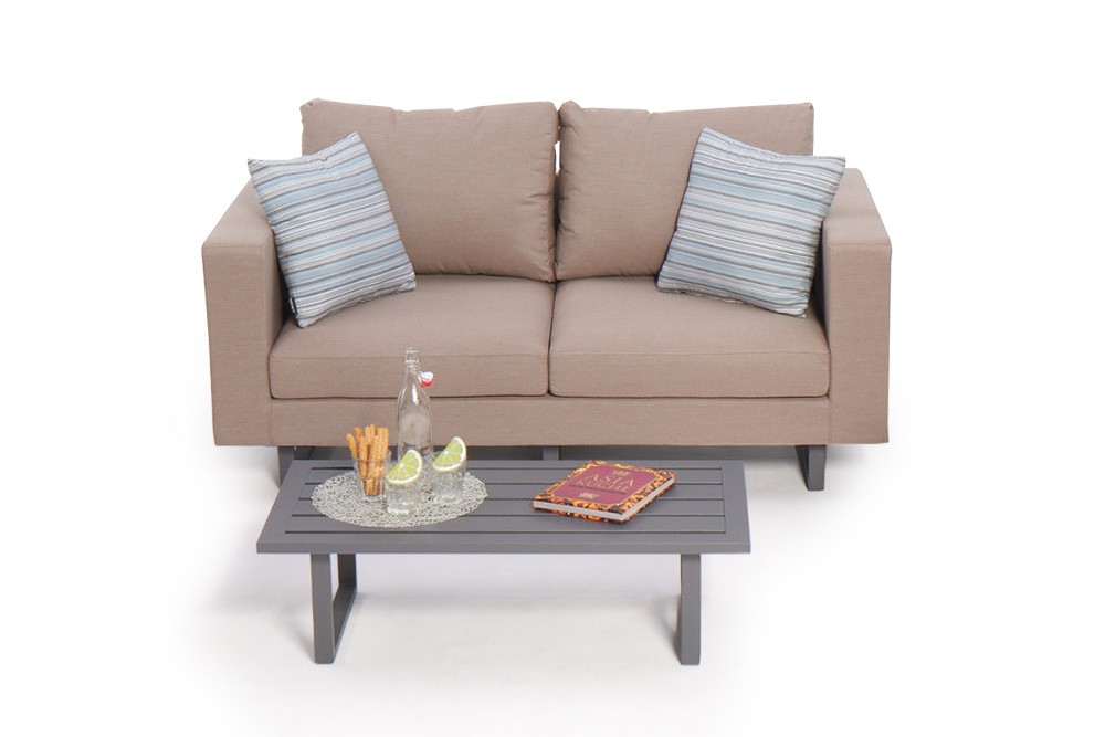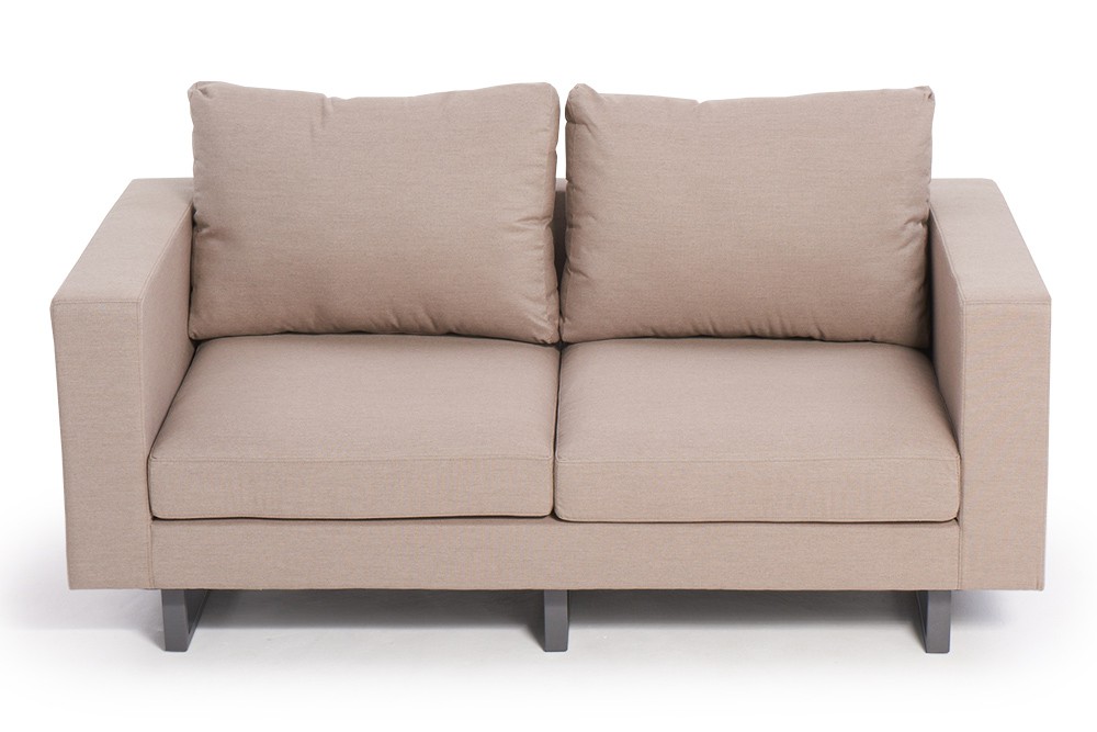 | Masse und Stückzahl | 1 x 2er Sofa L 165 x T 87 x H 66 1 x Aluminium Tisch L 100 x T 50 x H 30 cm |